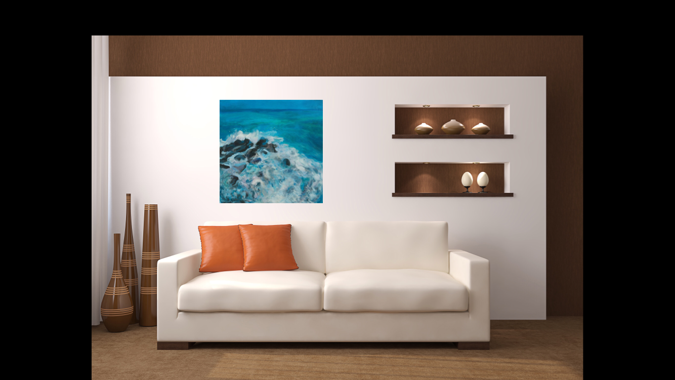 Original acrylic painting on deep edge canvas, 23.5 x 23.5 x 1.5 inches, (60 x 60 x 4cm). The painting continues around the sides so this piece is ready to hang or frame as you wish.